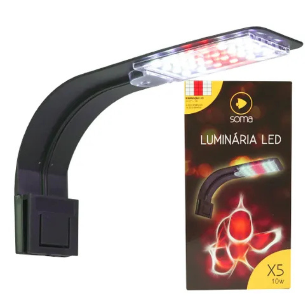 Luminária excelente para voce que busca qualidade e bom preço. As luminárias SOMA são as mais vendidas atualmente no mercano nacional. Isso devido a sua qualidade de iluminação. Ajudam a intensificar a cor dos peixes (principalmente de cores avermelhadas e alaranjadas como os Kinguios e Carpas). Excelente para uso em aquarios plantados de pequeno porte.